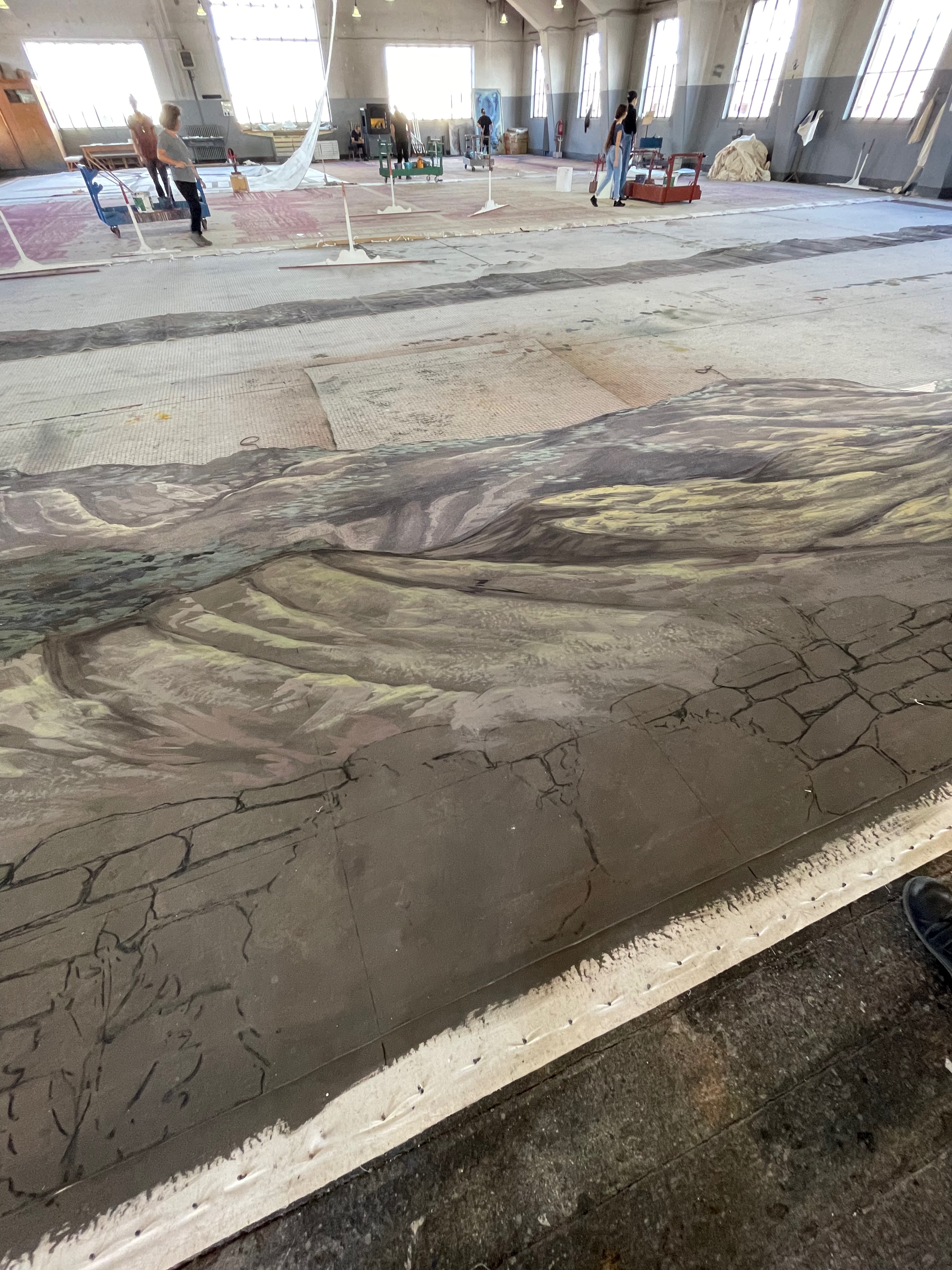 The scenic workshop of the Rome Opera House, where traditional techniques of painting onto canvas with rabbit glue paints are still used.