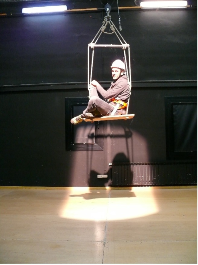 Workshop to discover scenotechnic movements: one-person swing ("bosun's cradle").