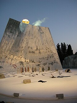 Medea's vlucht door de lucht in de wagen van de god van de zon (Grieks theater van Syracuse, 2009, regie Krzysztof Zanussi)