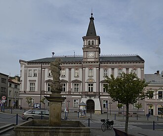 Fountain with Statue of Maria Virgin Immaculary in Železný Brod and City Hall 01.JPG