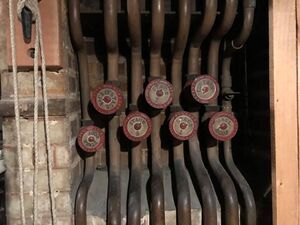 Control was done with a simple gas table, a set of valves with a master valve. By controlling the amount of gas, the intensity could be adjusted. A valve would control one, two or three rows of burners. Later, small pipes were added to ensure a pilot flame would stay lit if the burners were extinguished, so allowing complete blackouts during the performance. Bram Stoker (Q258) states in his essay on Irving and lighting (Q259) that darkness was ‘found to be, when under control, as important a factor in effects as light’. Changeover could, from this moment on, be done in darkness, without closing the curtain. The stagehands were therefore given ‘dark clothes and silent shoes’.