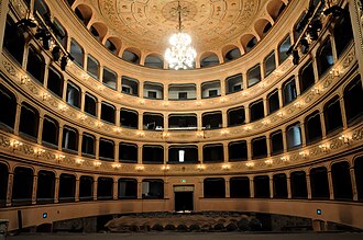 E’ un antico teatro storico, eretto nel quadriennio 1758-61 su disegno degli architetti Francesco Petroccni e Antonio Galli Bibiena. Ha subito modifiche e abbellimenti nel 1822. Appartiene al Comune ed è da diversi anni inagibile. (Italian)