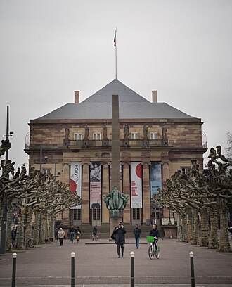 Built 1821 by Jean Villot. Opened 1821 with Grétry's La fausse magie. Destroyed by bombs on 10 September 1870. 1872-1873 reconstructed to Villot's plans by Johann Gottfried Conrath. Re-opened 4 September 1873 with Beethoven's ouverture Die Weihe des Hauses and Mozart's Le nozze di Figaro. 1888 extensions by Ott (new dressing rooms, library, costume stores). 1374 seats. - Used for opera and ballet performances by the resident opera company, Opéra national du Rhin. Also used for drama performances in Alsatian dialect by Théâtre Alsacien de Strasbourg. (English)
