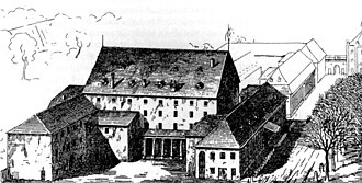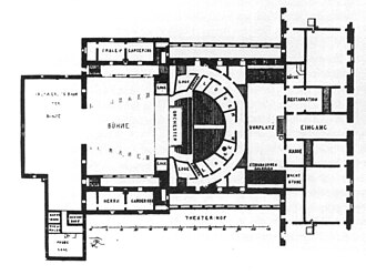Built 1808-1810 by Friedrich Weinbrenner for Grandduke Karl Friedrich von Baden, replacing an Orangerie building. Opened 9 Nov 1810 with Ferdinando Paër's Achilles. Destroyed by a fire on 28 Feb 1847 (with 63 victims). [Later, a new Hoftheater was built on the site.] (English)