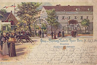 Variety theatre, opened ca. 1869. Opened as Vaudeville-Theater. Later renamed Puhlmann's Vaudeville, Fröbels Allerlei Theater, Filmpalast Puhlmann, Berliner Neues Operettentheater and Puhlmann-Theater-Lichtspiele-Varieté. Various rebuildings. Demolished 1963 in favour of a parking lot. (English)