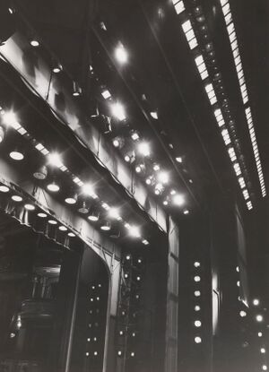 In the inter-war period, increasingly powerful electric lamps enabled the first spotlights, creating focused beams of light. A new lighting style emerged, based on large numbers of sources, each lighting a small portion of the stage with precision.